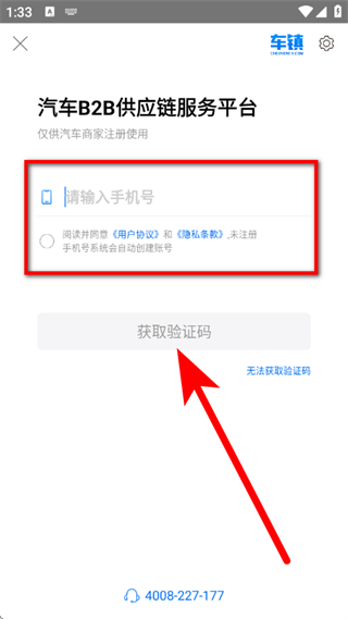 3、在平臺頁面,輸入手機號,勾選協(xié)議后,點擊獲取驗證碼。