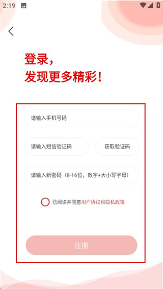 4、在注冊頁面,填寫信息并勾選協(xié)議后,點擊注冊完成賬號注冊。