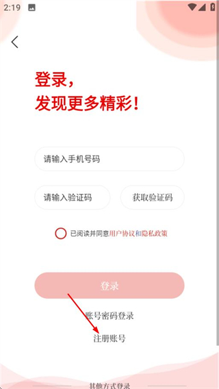 3、在登錄頁面,點擊注冊賬號選項,進入注冊頁面。