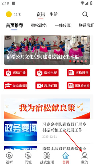 1、在今日宿松首頁,點擊底部的我的選項,進入個人中心頁面。