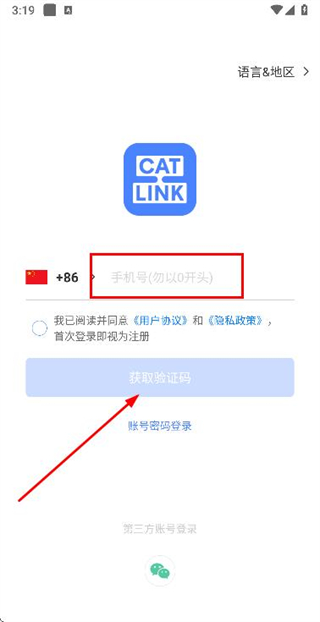 2、在手機(jī)登錄頁面填寫手機(jī)號,勾選協(xié)議后,點(diǎn)擊獲取驗(yàn)證碼。