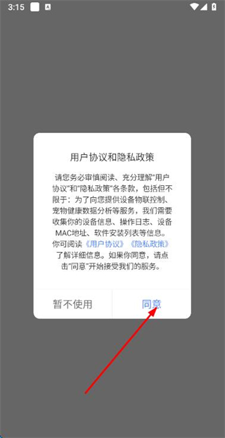 1、在使用協(xié)議隱私政策彈窗中點(diǎn)擊同意按鈕,進(jìn)入登錄頁面。