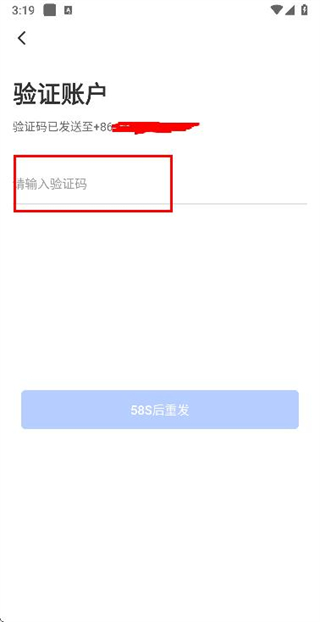 3、在輸入短信驗(yàn)證碼頁面填寫收到的驗(yàn)證碼,完成賬號的登錄操作。