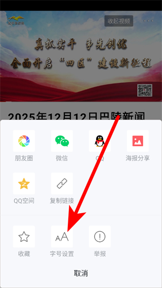 3、在新聞詳情頁(yè)面,點(diǎn)擊分享相關(guān)按鈕,彈出的菜單。
