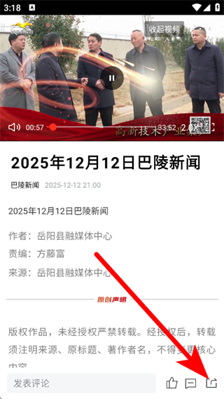 2、在巴陵新聞列表,點(diǎn)擊選擇目標(biāo)新聞,進(jìn)入詳情頁(yè)。