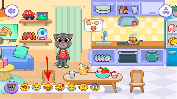 2、在室內(nèi)場景中,點(diǎn)擊下方的表情按鈕,可與角色互動并觸發(fā)對應(yīng)反應(yīng),這是提升角色好感的基礎(chǔ)操作,按指引選擇即可。