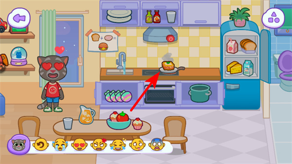 3、在廚房場景里,點(diǎn)擊灶臺上的食物,可完成對應(yīng)的互動任務(wù),這是推進(jìn)關(guān)卡進(jìn)度的核心操作,跟隨指引操作即可。