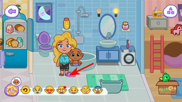 4、在浴室場景中,點(diǎn)擊對應(yīng)的互動點(diǎn),可完成照顧寶寶的相關(guān)操作,這是完成場景任務(wù)的必要步驟,按提示執(zhí)行即可。