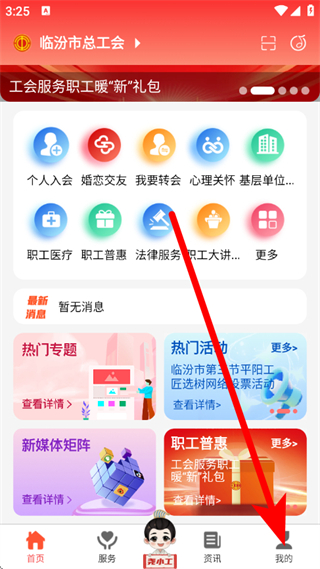 1、打開臨汾工會,點擊底部的我的,進入我的頁面。
