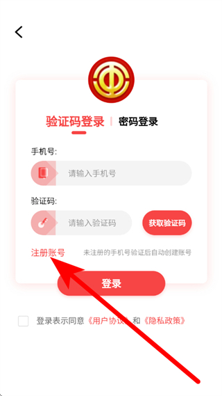 3、在登錄頁面,點擊注冊賬號,進入注冊頁面。