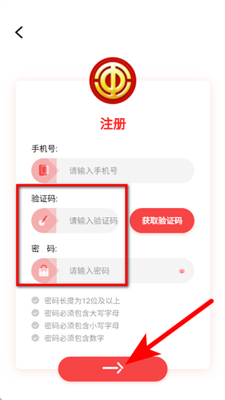 5、輸入驗證碼,設(shè)置密碼,點擊箭頭,完成注冊。