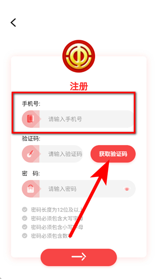 4、在注冊頁面,輸入手機號,點擊獲取驗證碼。