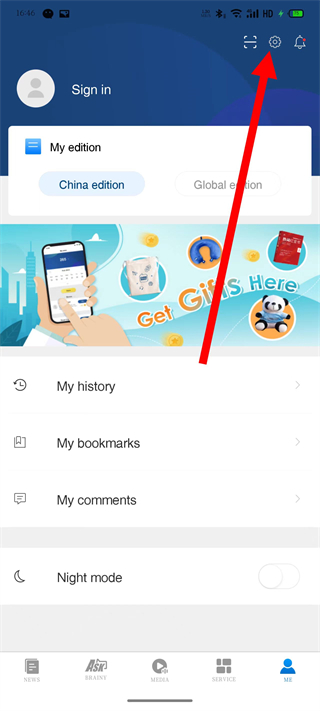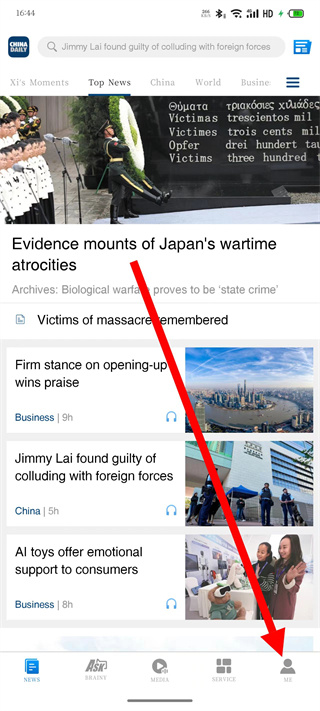1、打開中國(guó)日?qǐng)?bào)網(wǎng),點(diǎn)擊底部導(dǎo)航欄的我的,進(jìn)入我的頁面。