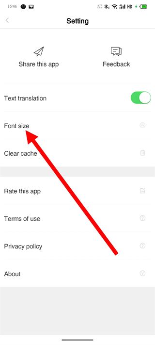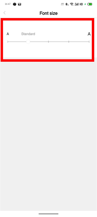 4、在Font size頁面,拖動(dòng)滑塊,即可調(diào)整資訊內(nèi)容的字體大小。