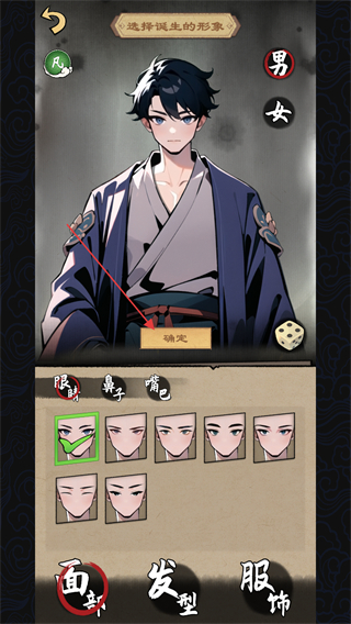 4、在選擇誕生的形象界面,選定性別與面部等形象樣式后,點擊確定按鈕完成本次形象創(chuàng)建流程。