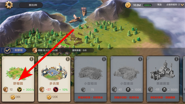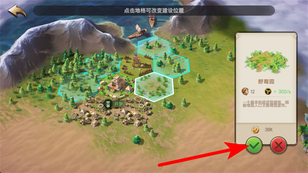 3、在主界面地圖區(qū)域,找到合適的地格,點(diǎn)擊確定野莓園的建設(shè)位置。