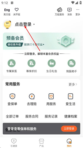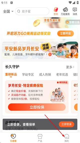 1、在平安樂健康首頁,點擊底部的我的選項,進入個人中心頁面。