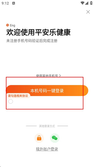 3、在登錄頁面,勾選協(xié)議后點擊本機號碼一鍵登錄按鈕,完成賬號登錄操作。