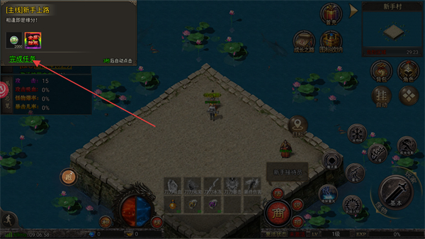 3、處于新手村場景時(shí),接取主線新手上路任務(wù),待倒計(jì)時(shí)結(jié)束后點(diǎn)擊完成任務(wù)按鈕領(lǐng)取對應(yīng)的任務(wù)獎勵。