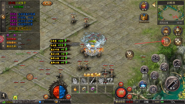 4、在訓(xùn)練場場景中,針對主線小試身手擊殺怪物的任務(wù),點(diǎn)擊界面中的掛自動按鈕開啟自動戰(zhàn)斗來推進(jìn)任務(wù)。