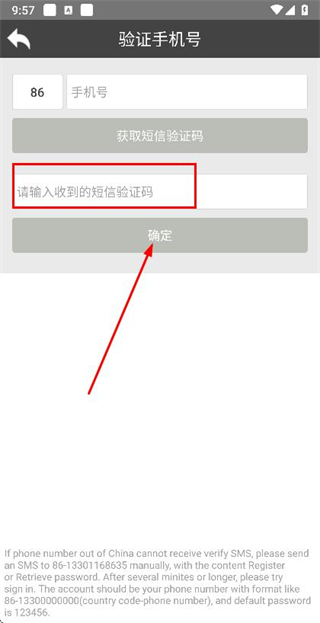 3、在注冊賬號頁面填寫驗證碼,勾選協(xié)議后點擊確定完成注冊操作。