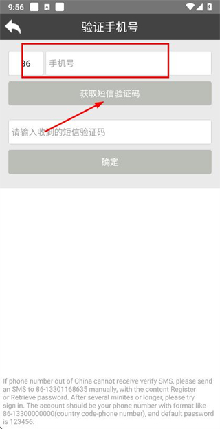 2、在注冊賬號頁面填寫手機號碼后,點擊獲取短信驗證碼。