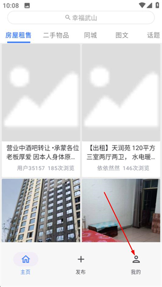 1、在幸福武山首頁,點擊底部的我的選項,進入個人中心頁面。