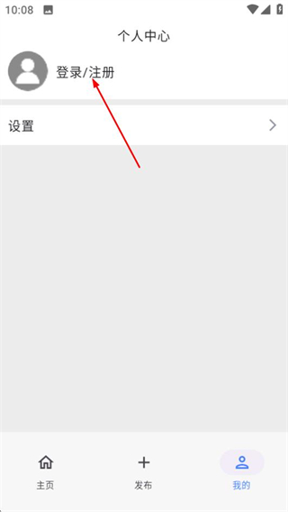 2、在個人中心頁面,點擊登錄注冊選項,進入登錄選擇頁面。