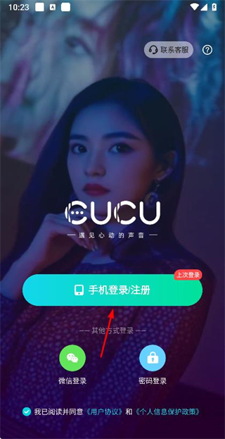1、進(jìn)入CUCU點(diǎn)擊手機(jī)登錄,進(jìn)入登錄頁面。