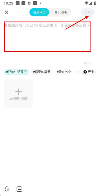 2、在廣場(chǎng)動(dòng)態(tài)頁(yè)面點(diǎn)擊底部的發(fā)布按鈕,進(jìn)入內(nèi)容編輯頁(yè)面。