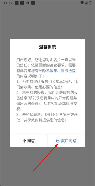 1、在使用協(xié)議隱私政策彈窗中點擊已讀并同意按鈕,進入登錄頁面。