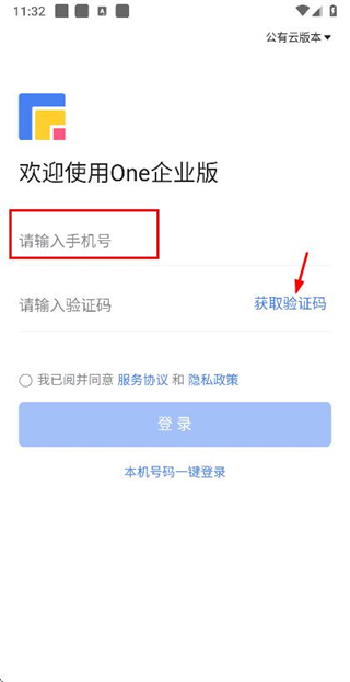 2、在手機登錄頁面填寫手機號,勾選協(xié)議后,點擊獲取驗證碼。