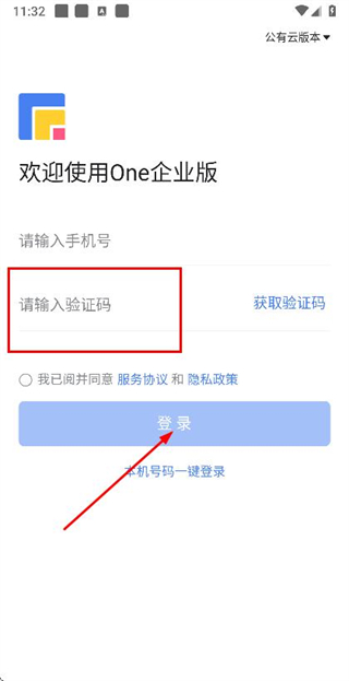 3、在驗證碼輸入框中填寫收到的驗證碼,點擊登錄完成賬號的登錄操作。
