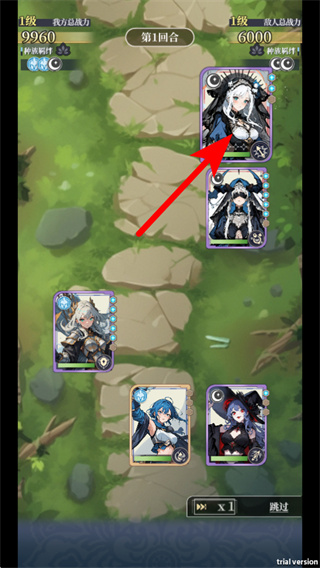 4、進(jìn)入戰(zhàn)斗界面后,點(diǎn)擊箭頭標(biāo)注的敵方角色,這是觸發(fā)戰(zhàn)斗交互的必要操作,按指引操作即可推進(jìn)戰(zhàn)斗進(jìn)程。