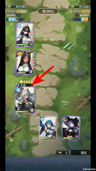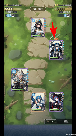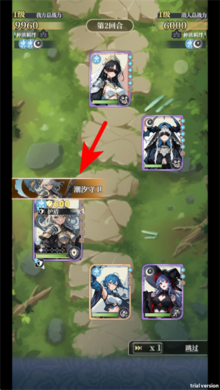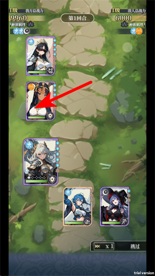 4、在戰(zhàn)斗回合中,點(diǎn)擊箭頭指向的技能觸發(fā)區(qū)域,這是釋放角色技能的必要操作,按指引操作即可完成技能釋放。