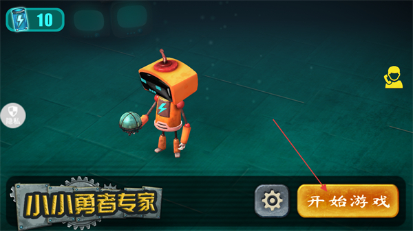 1、這是小小勇者專家的啟動界面,界面顯示角色為機器人形象、體力值10,點擊開始游戲按鈕,即可進入游戲的互動場景環(huán)節(jié)。