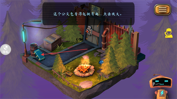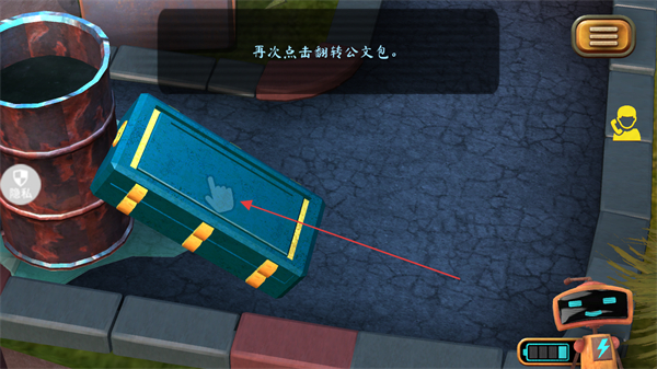 2、處于游戲互動場景中,根據(jù)游戲中機器人給出的提示,點擊場景內(nèi)的公文包,執(zhí)行放大操作,推進當前的互動流程。