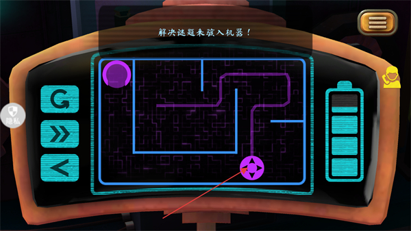 1、需依據(jù)提示,通過左側按鈕可以幫助操作,讓紫色部件沿線路移動至對應位置,完成該環(huán)節(jié)的謎題裝配。