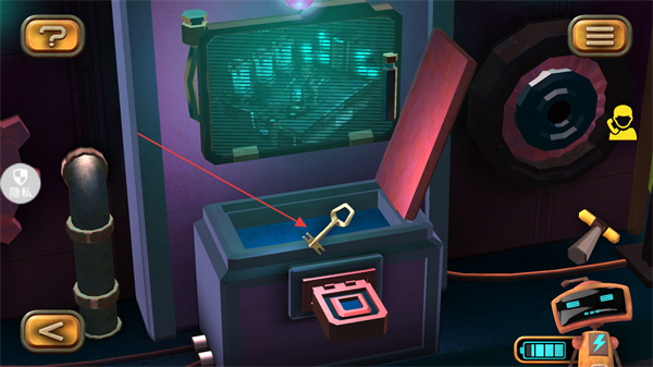 2、在解開謎題后獲取箱內的鑰匙道具,它是推進后續(xù)游戲流程的關鍵物品,拾取后繼續(xù)進行下一步操作。