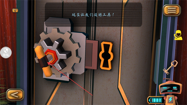 3、按照現(xiàn)在讓我們旋轉工具的指引,操作對應工具進行旋轉,使其與齒輪部件匹配,以推進游戲進程。