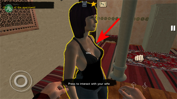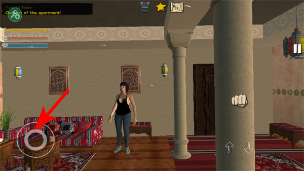 1、進(jìn)入游戲后,點(diǎn)擊箭頭指引的選項,這是開啟新對局的關(guān)鍵操作,點(diǎn)擊后即可進(jìn)入游戲的公寓場景。