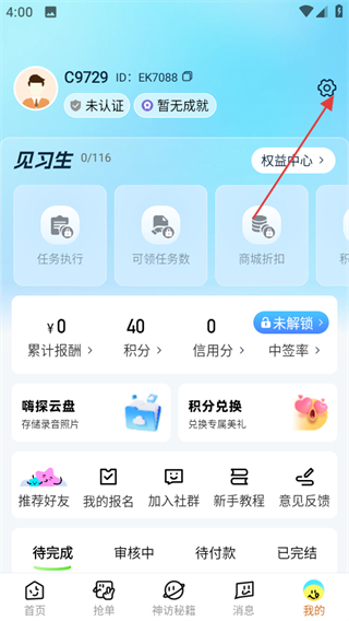 2、在個(gè)人中心頁面,點(diǎn)擊右上角的設(shè)置圖標(biāo),進(jìn)入設(shè)置中心頁面。