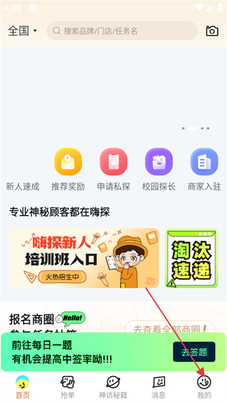 1、在嗨探首頁,點(diǎn)擊底部的我的選項(xiàng),進(jìn)入個(gè)人中心頁面。
