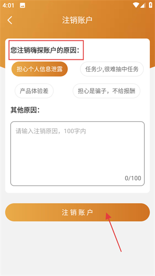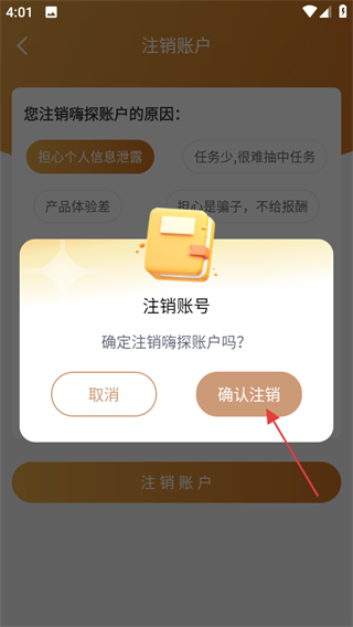6、在原因頁面,選擇注銷原因后點(diǎn)擊注銷賬戶,彈出確認(rèn)窗口。