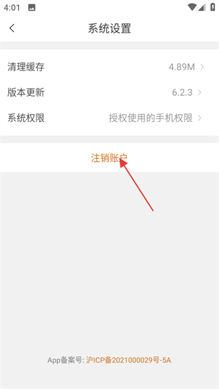 4、在系統(tǒng)設(shè)置頁面,點(diǎn)擊注銷賬戶選項(xiàng),進(jìn)入注銷確認(rèn)頁面。