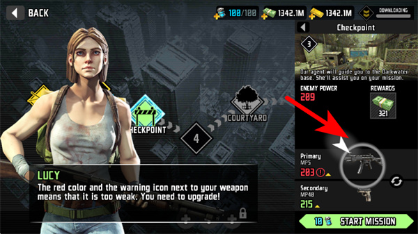 1、進(jìn)入游戲后,點(diǎn)擊箭頭指引的武器選項(xiàng),這是選定出戰(zhàn)武器的關(guān)鍵操作,點(diǎn)擊后即可進(jìn)入武器配置界面準(zhǔn)備任務(wù)。