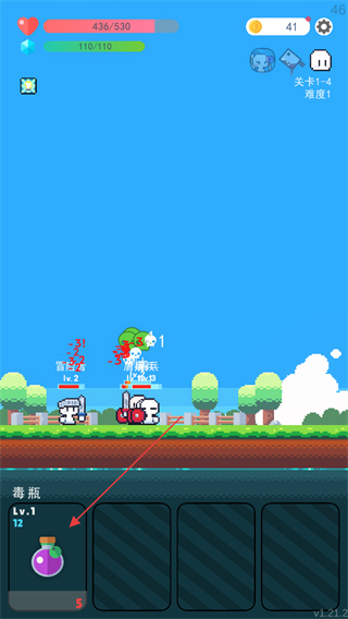 1、在關(guān)卡4中,使用毒瓶道具攻擊敵人,輔助戰(zhàn)斗。