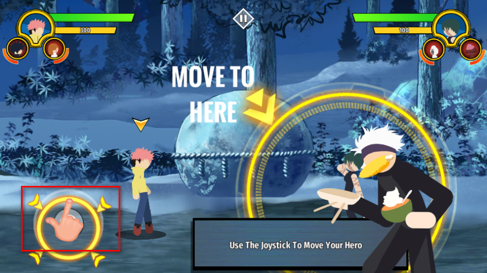 2、在對(duì)局中通過左側(cè)的搖桿控制英雄移動(dòng),按照指引移動(dòng)到目標(biāo)位置。