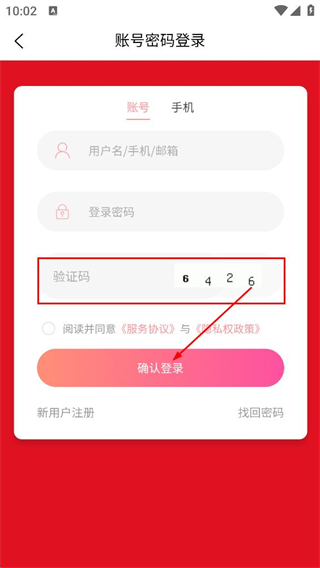 4、在賬號密碼登錄界面,填寫驗證碼,點擊確認登錄按鈕完成賬號登錄。