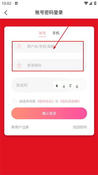 3、在賬號密碼登錄界面,填寫用戶名/手機/郵箱、登錄密碼對應(yīng)的密碼。